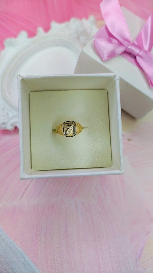 Elegante anillo infantil con diseño de búho elaborado en oro de 10K. Disponible en tallas #2 y #4, ideal para niños pequeños. Su delicado acabado y simbología del búho representando sabiduría hacen de esta joya una pieza especial para ocasiones memorables o como primer anillo de calidad para los más pequeños.