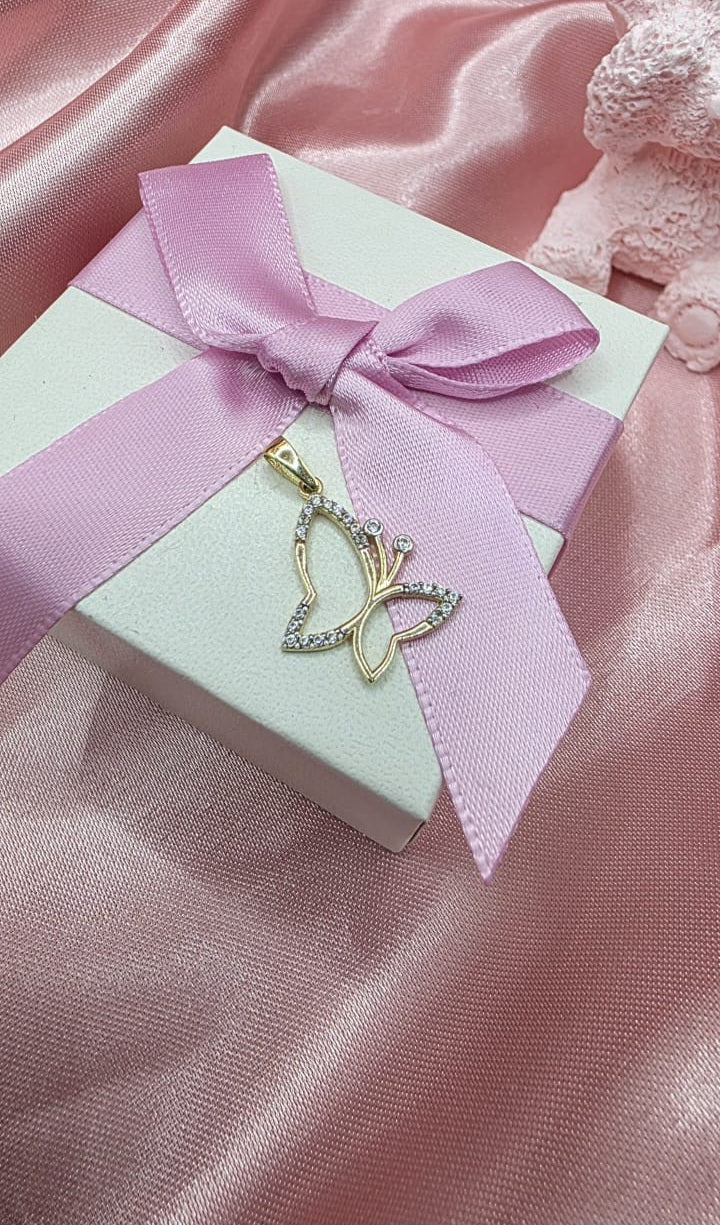 Este dije de mariposa en silueta, elaborado en oro de 10 quilates, ofrece un diseño delicado y elegante. Con un peso de 1.0 g, es una pieza ligera perfecta para uso diario o como accesorio sofisticado en ocasiones especiales, destacando por su durabilidad y brillo característicos del oro auténtico. Ideal para quienes buscan un detalle sutil que combine calidad y estilo.