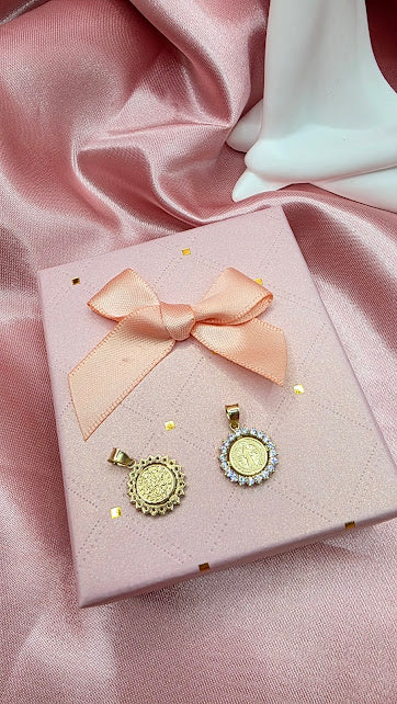 DIJE SAN BENITO PIEDRAS EN ORO DE 10K