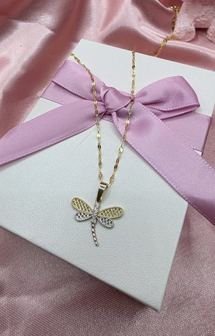 Esta delicada gargantilla de libélula en oro de 10 quilates, con un peso de 1.5 gramos y una longitud de 18 cm, combina elegancia y resistencia. Su diseño detallado aporta un toque de sofisticación discreta, ideal para complementar cualquier atuendo con un símbolo de ligereza y transformación. La calidad del oro 10k garantiza durabilidad, haciendo de esta pieza una inversión confiable para tu colección de joyería fina.