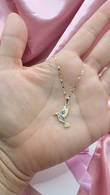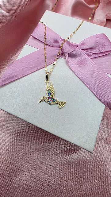 GARGANTILLA COLIBRI COLORES EN ORO DE 10K