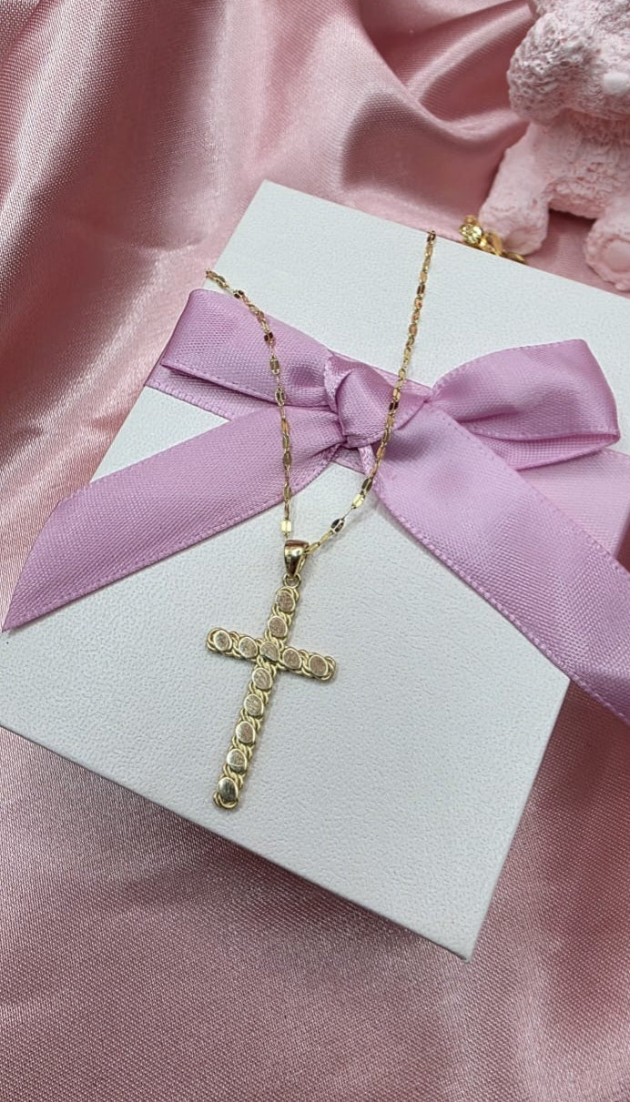 Esta elegante gargantilla de bolitas presenta un delicado diseño con cruz fabricada en oro de 10 quilates. Pesa 2.2 gramos y mide 18 cm, lo que la hace ideal para un uso diario o para complementar cualquier atuendo con un toque sofisticado y sutil. Su tamaño y peso garantizan comodidad sin sacrificar la durabilidad propia del oro auténtico.
