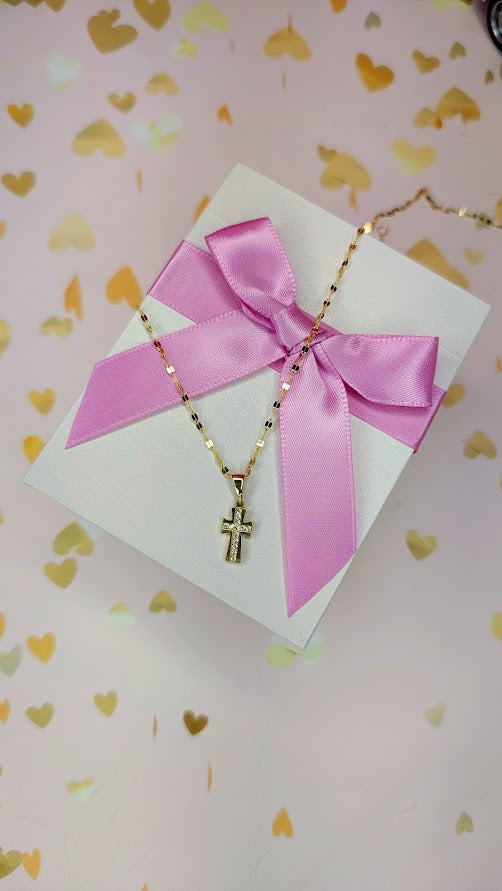Gargantilla cruz ilera piedras en oro de 10k