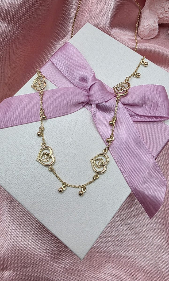 Esta elegante gargantilla de corazones caracol está fabricada en oro de 10 quilates garantizado, asegurando calidad y durabilidad. Con una longitud de 45 cm, ofrece un ajuste cómodo y versátil, perfecto para resaltar cualquier atuendo con un toque sofisticado y delicado. Su diseño distintivo combina símbolos de amor y naturaleza, ideal para quien busca una pieza única y significativa.