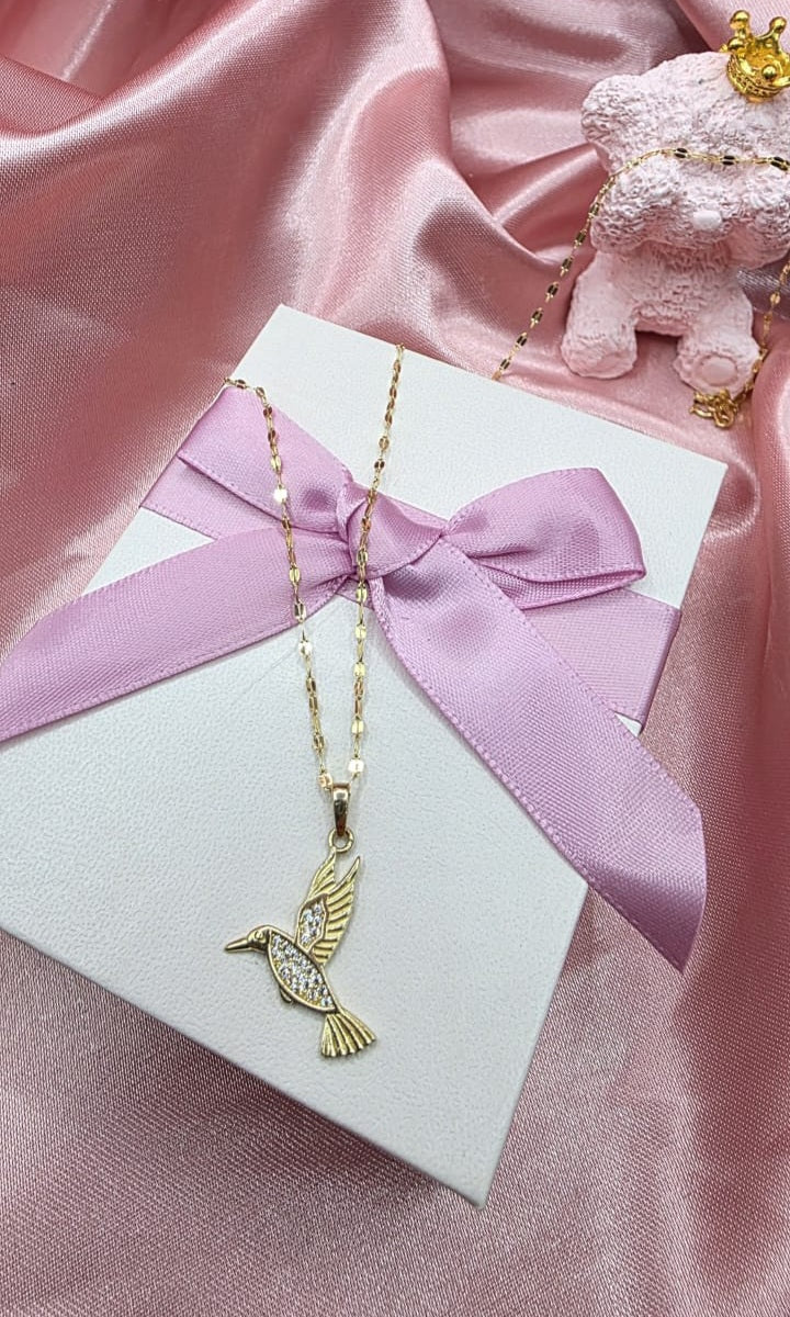 Gargantilla Colibrí blanco Oro de 10k