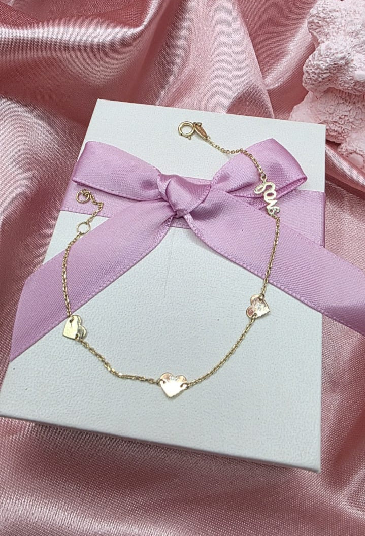Pulso Corazones Love En Oro De 10k