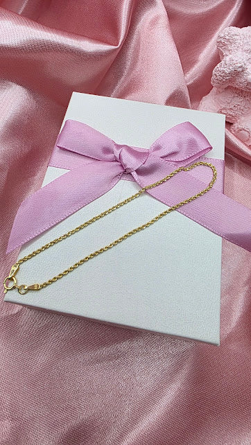 Delicada pulsera torzal en oro de 10 quilates, diseñada con un micro tejido que ofrece elegancia sin peso. Con apenas 0.5 gramos, esta joya es perfecta para uso diario y ocasiones especiales. Su medida de 18 centímetros se ajusta cómodamente a la mayoría de muñecas. El acabado torzal proporciona textura y brillo.